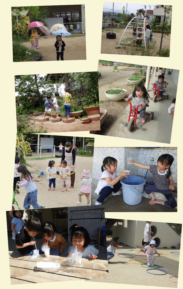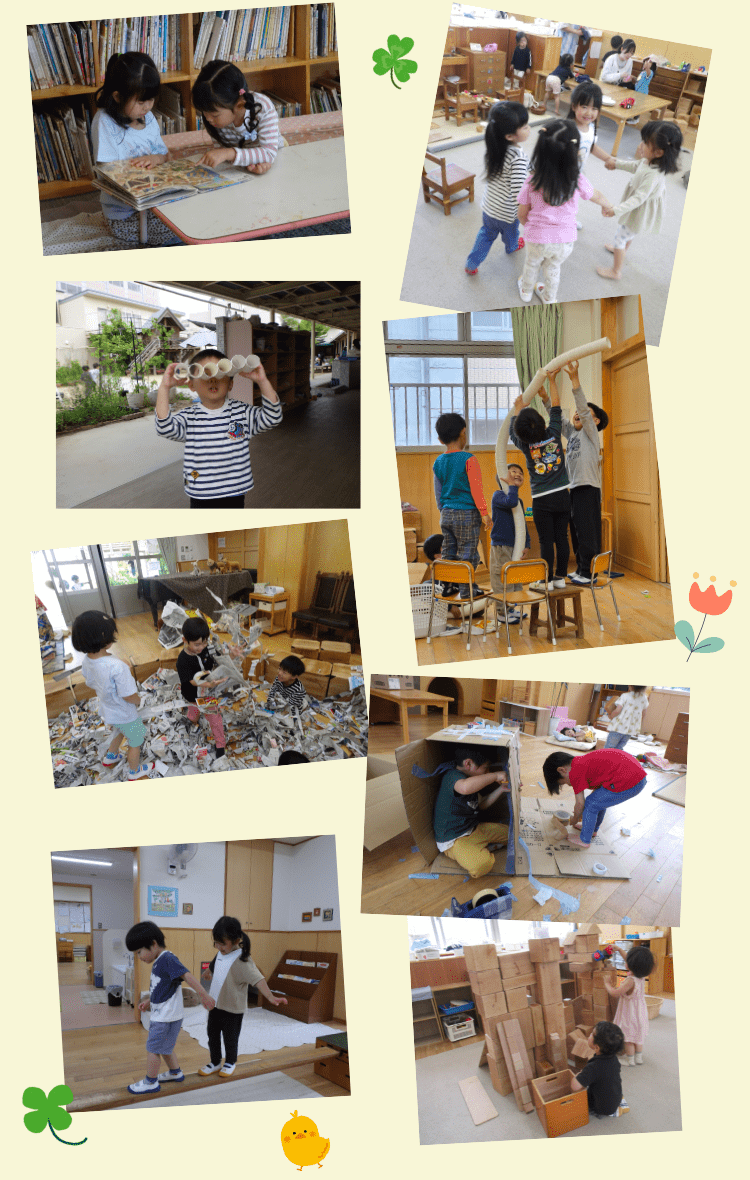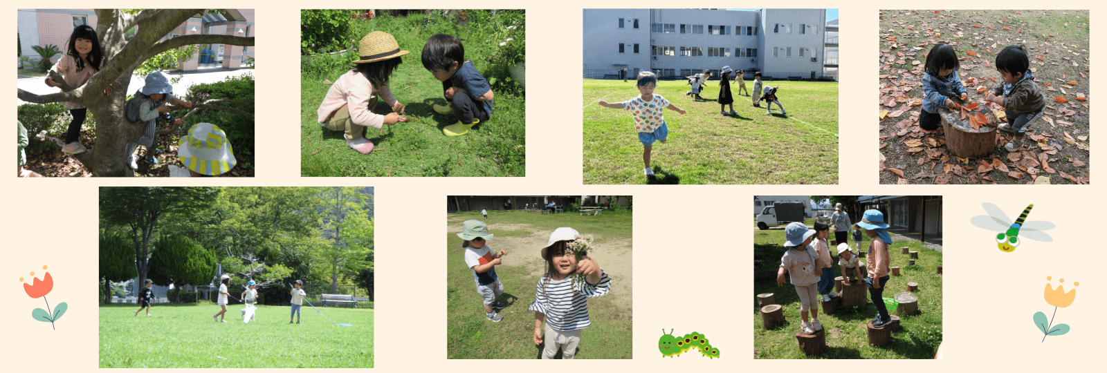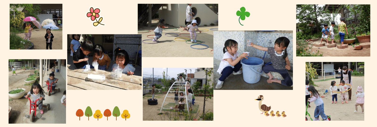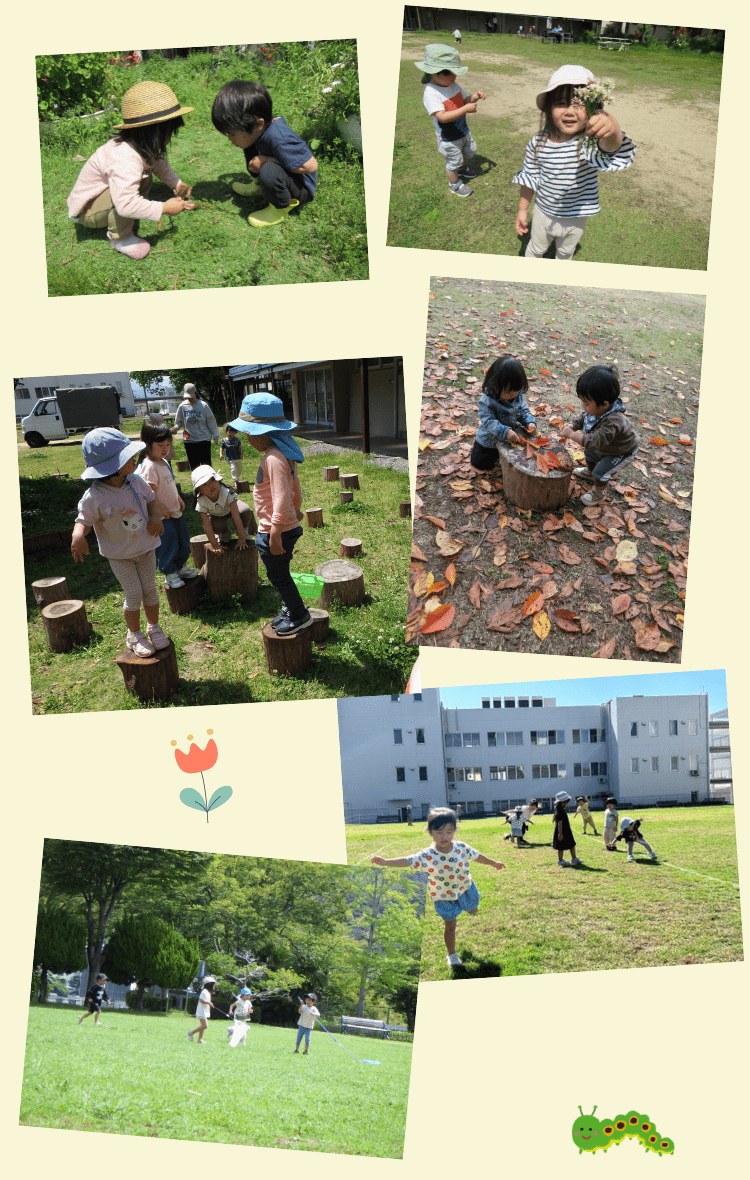 環境を通して新しい発見や工夫、失敗を重ねながら遊び創り出す子どもに育って欲しいと願っています。
