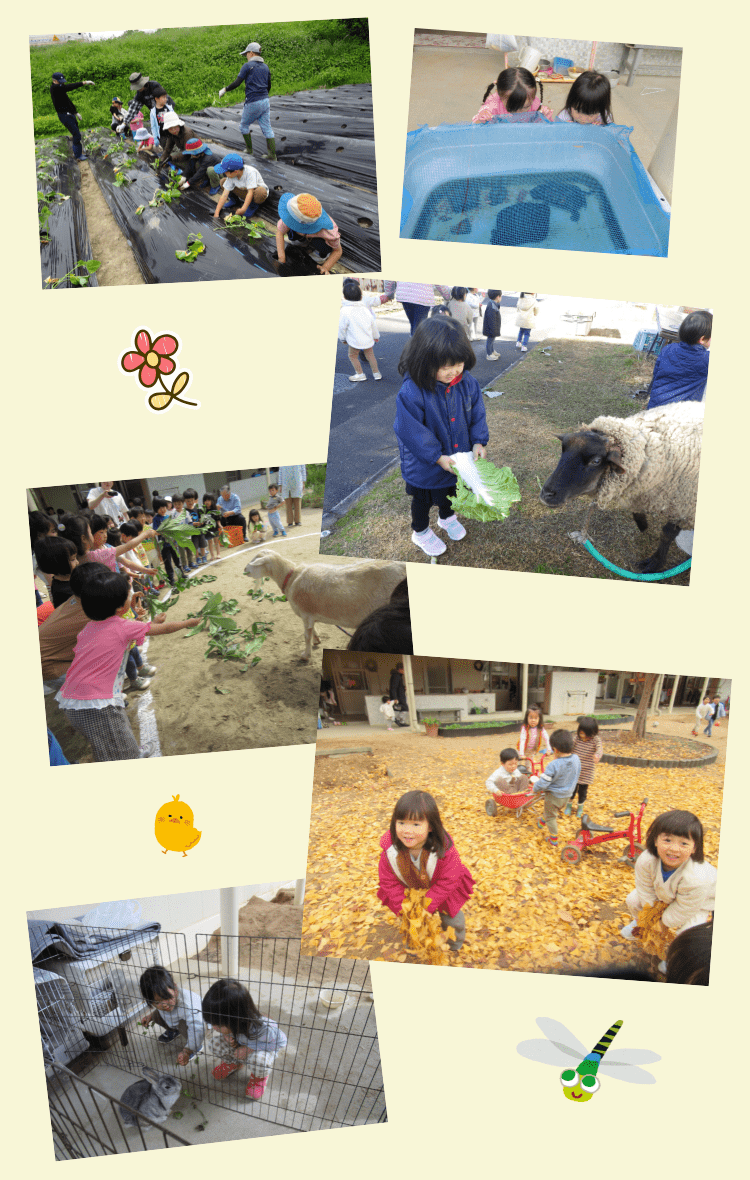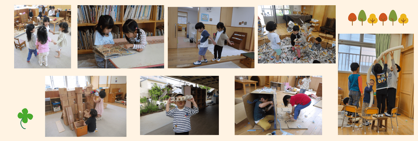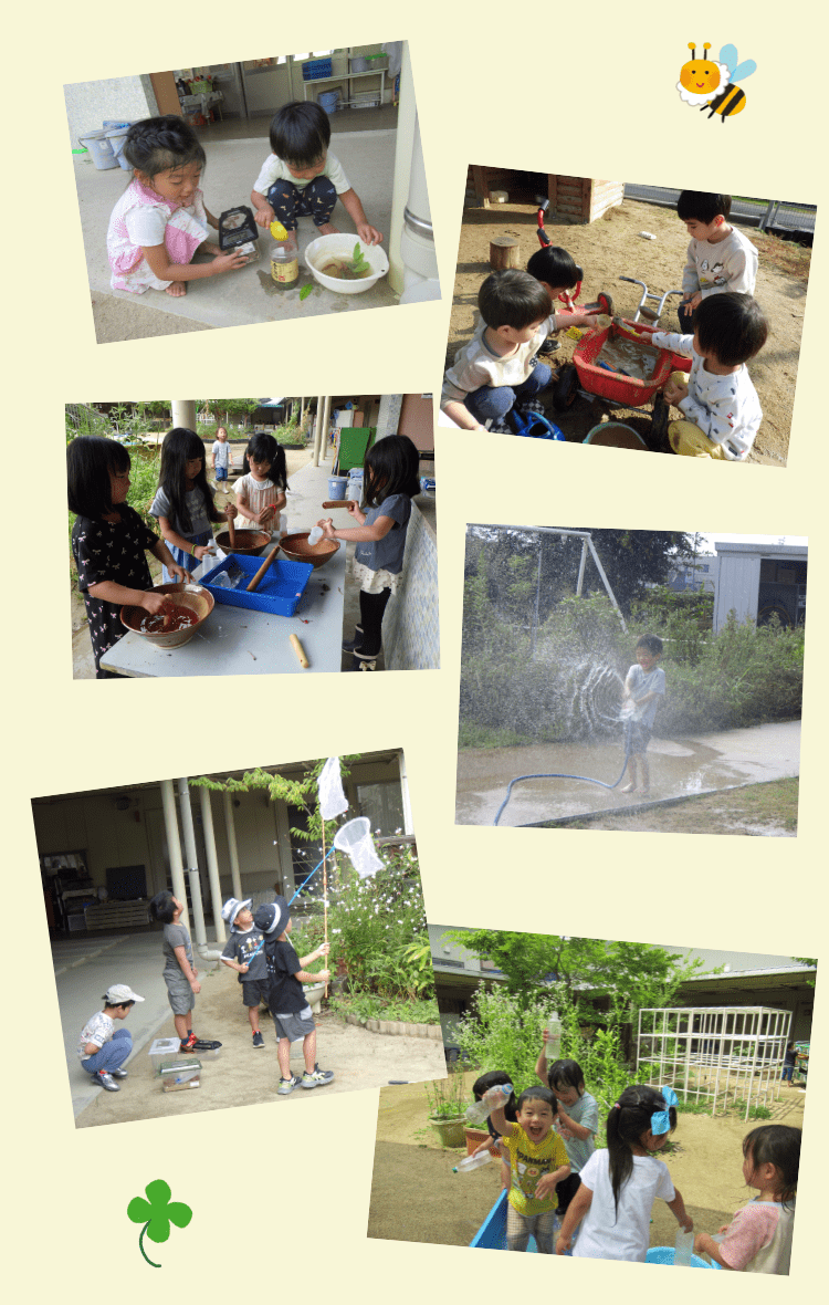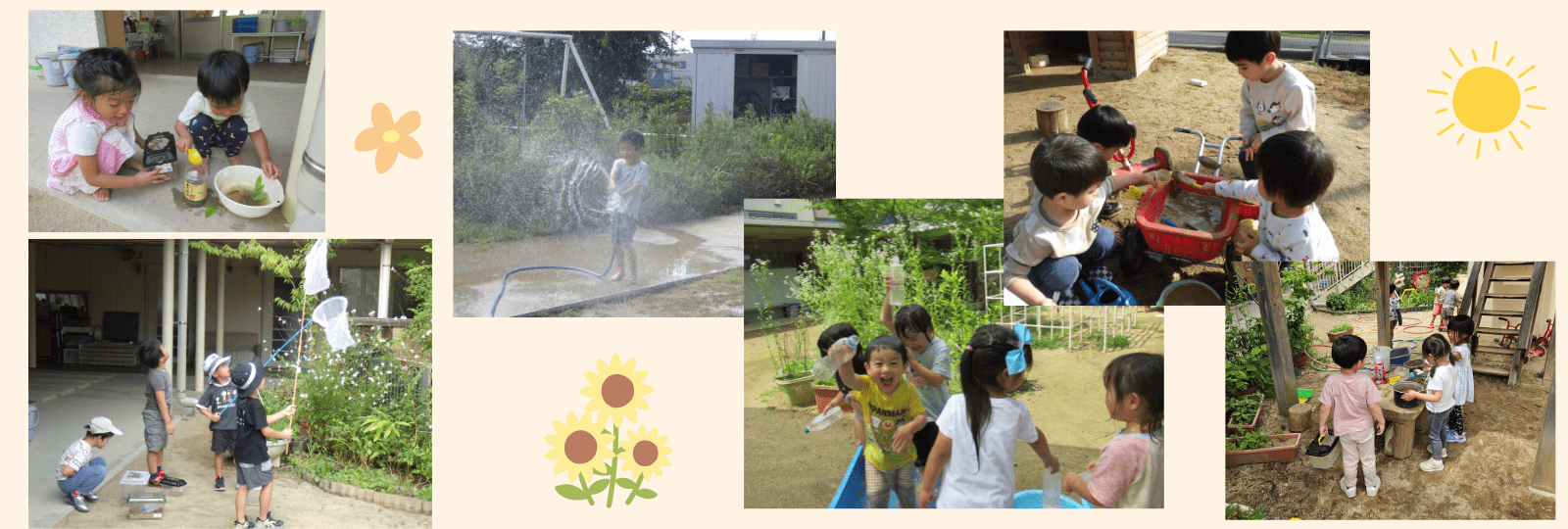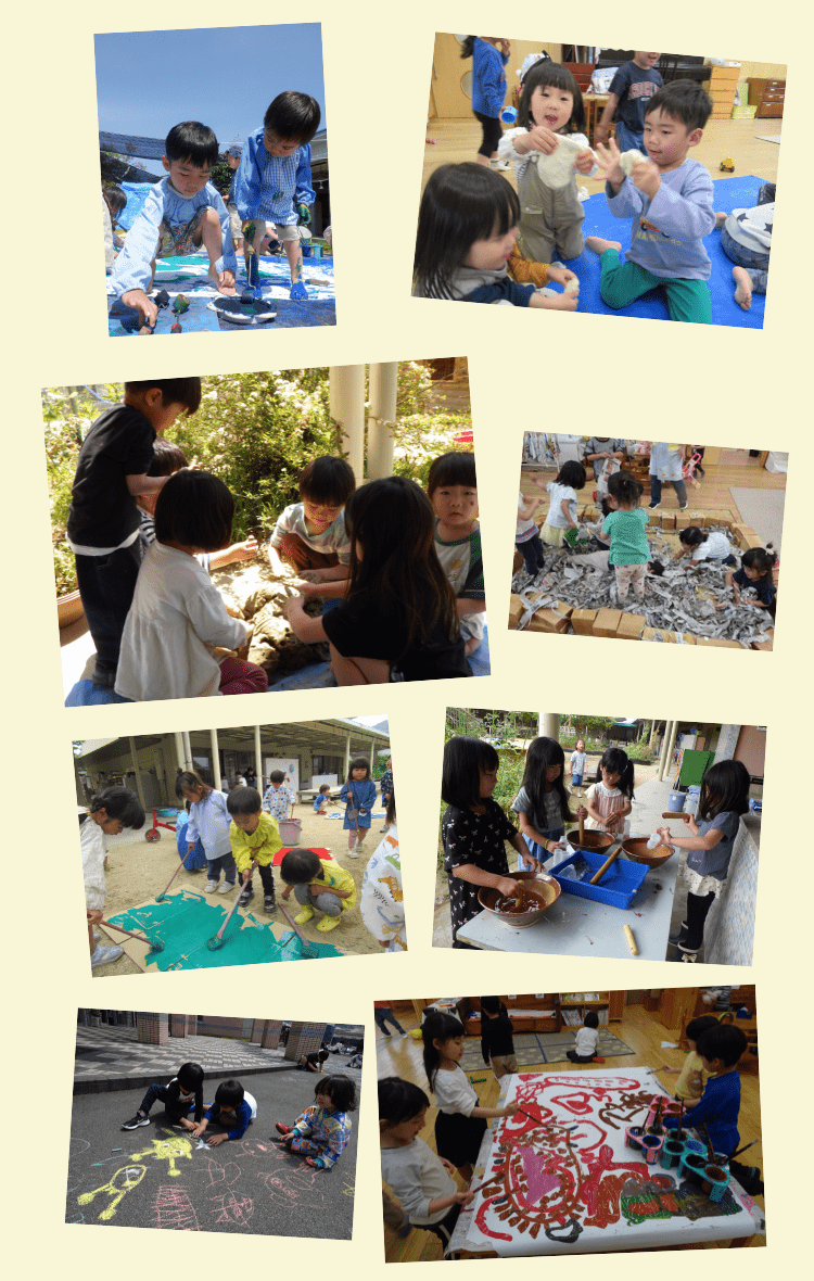 環境を通して新しい発見や工夫、失敗を重ねながら遊び創り出す子どもに育って欲しいと願っています。